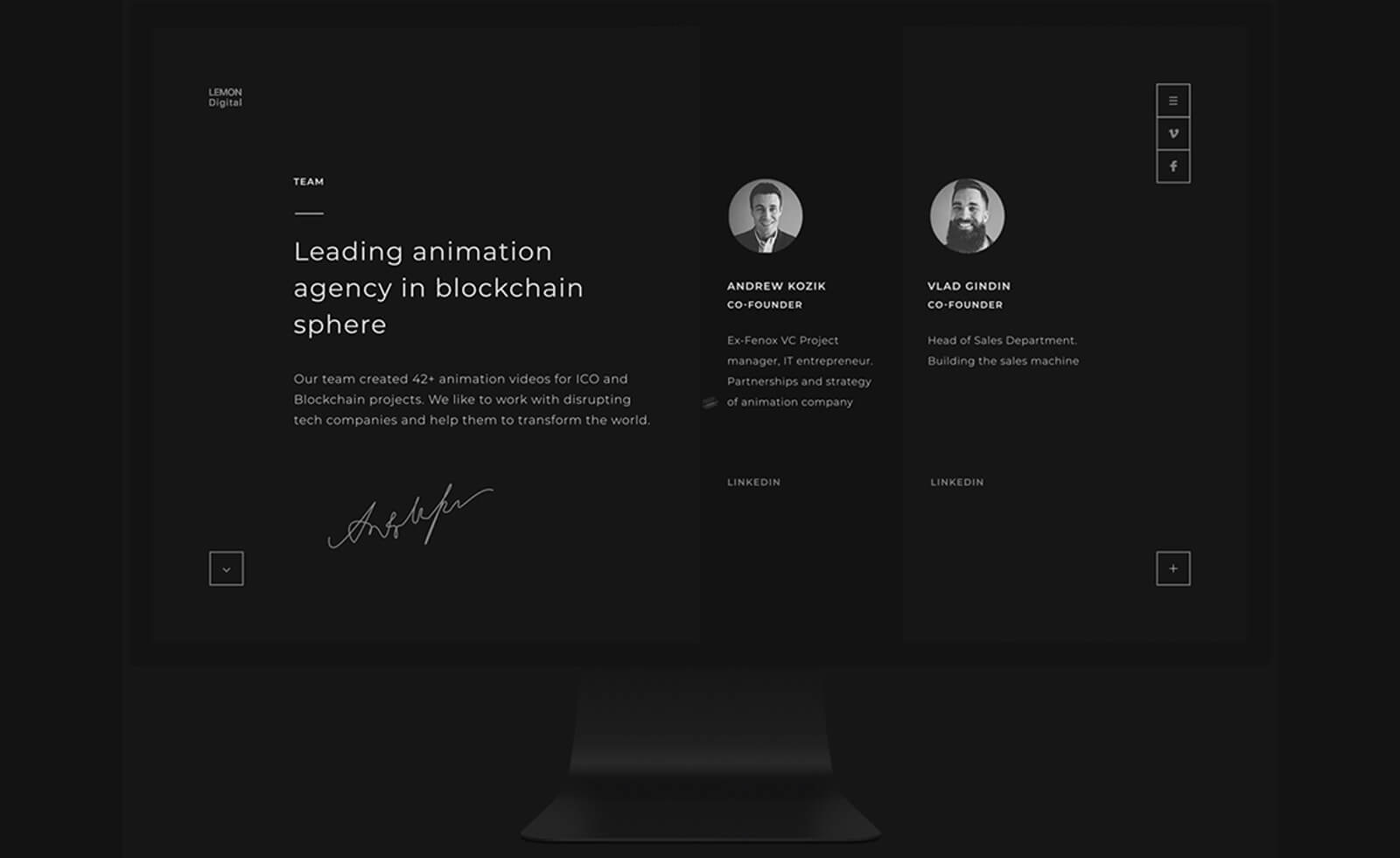 The design concept was to embody the chaotic bunch of dots that form the animated crypto circle, crypto coins and the blockchain sphere which Lemon Digital specializes in.